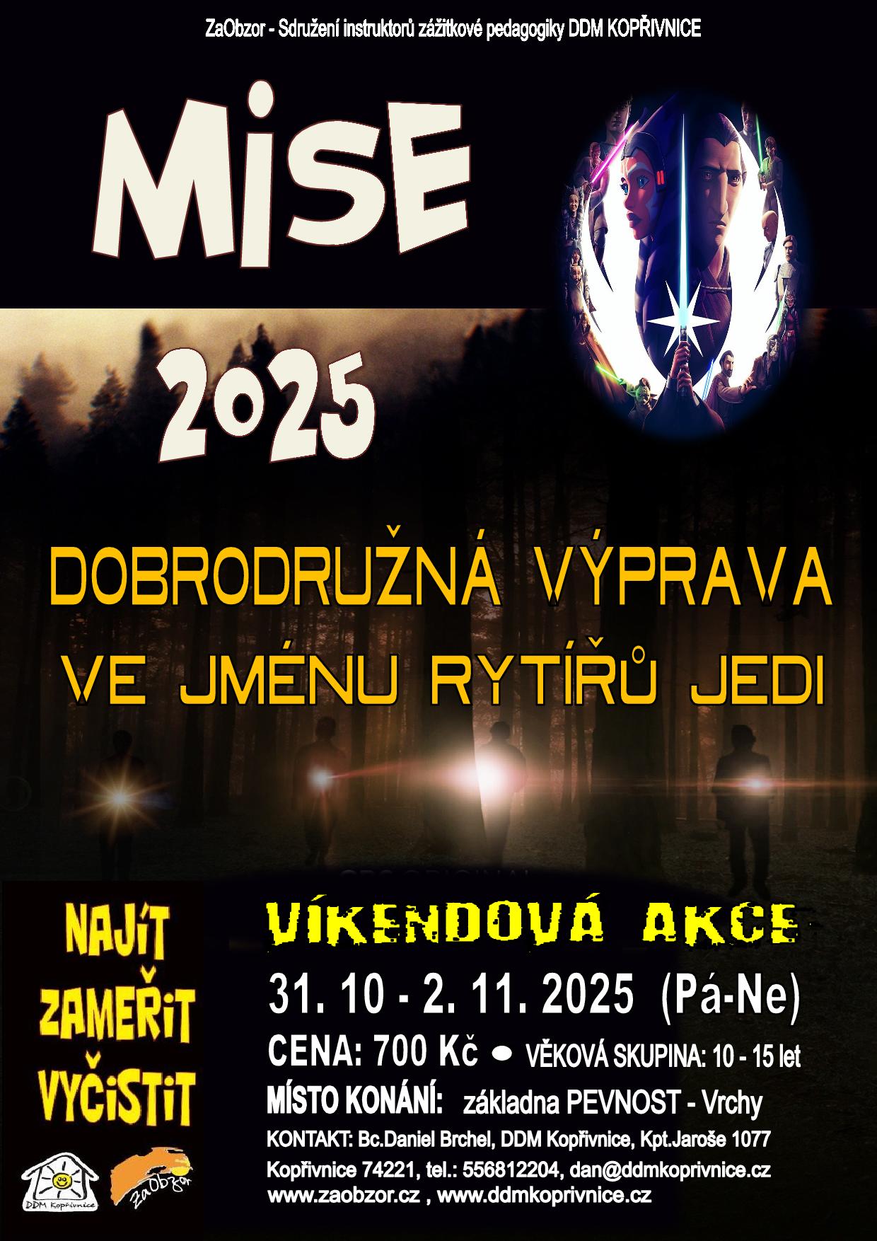 NA MISI SE MůŽETE PŘIHLÁSIT ZDE: https://www.ddmkoprivnice.cz/tabory/1000-mise-2025-dobrodruzna-vyprava-ve-jmenu-rytiru-jedi